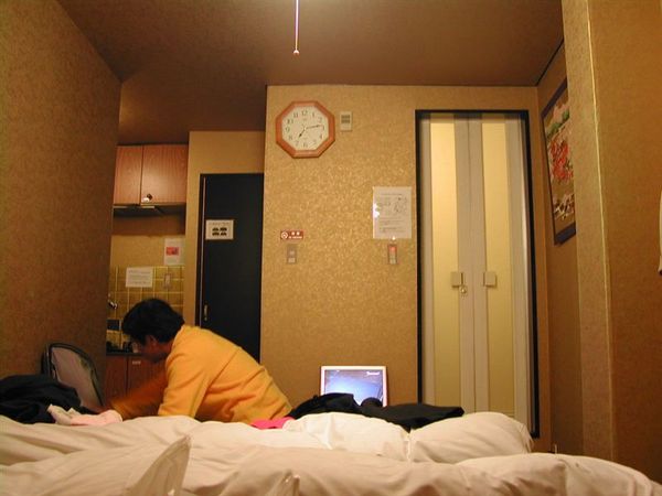 剩下的空間放了張小桌子,上面有個15"的小液晶可以看電視